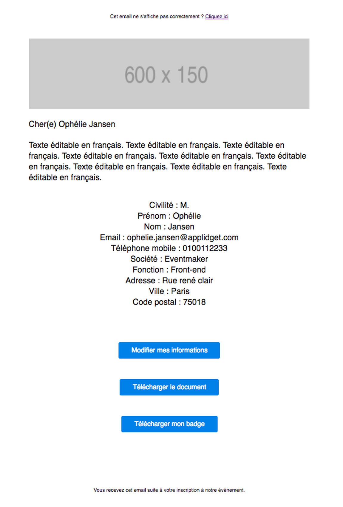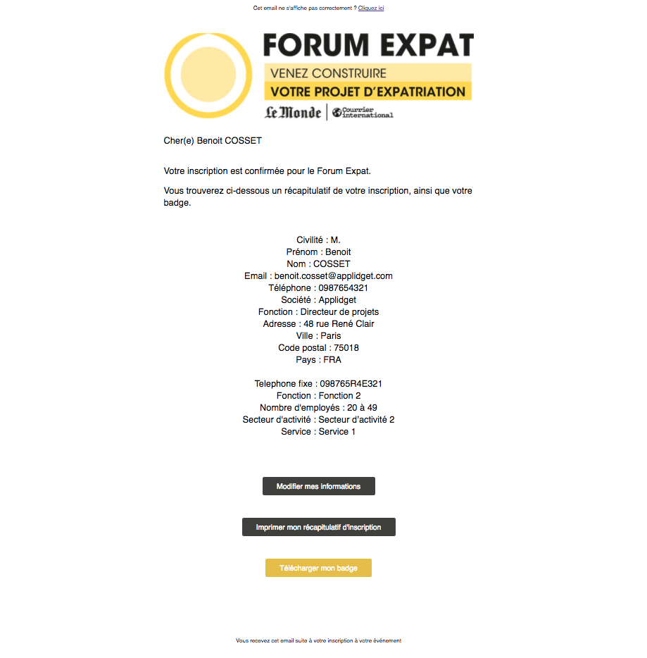 Récapitulatif d’inscription bilingue (FR/EN)